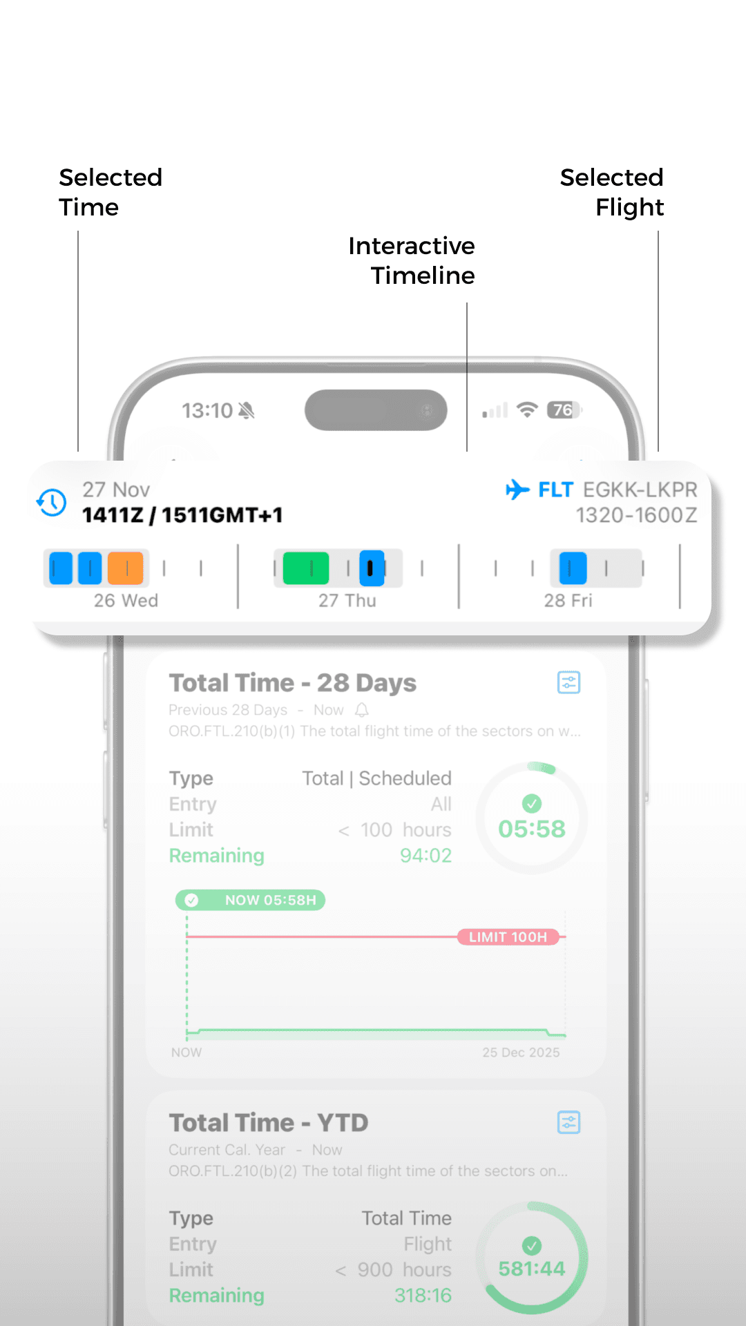 On the top of the Limitations section, you can see the flight timeline. All the limitations are calculated to the selected time.